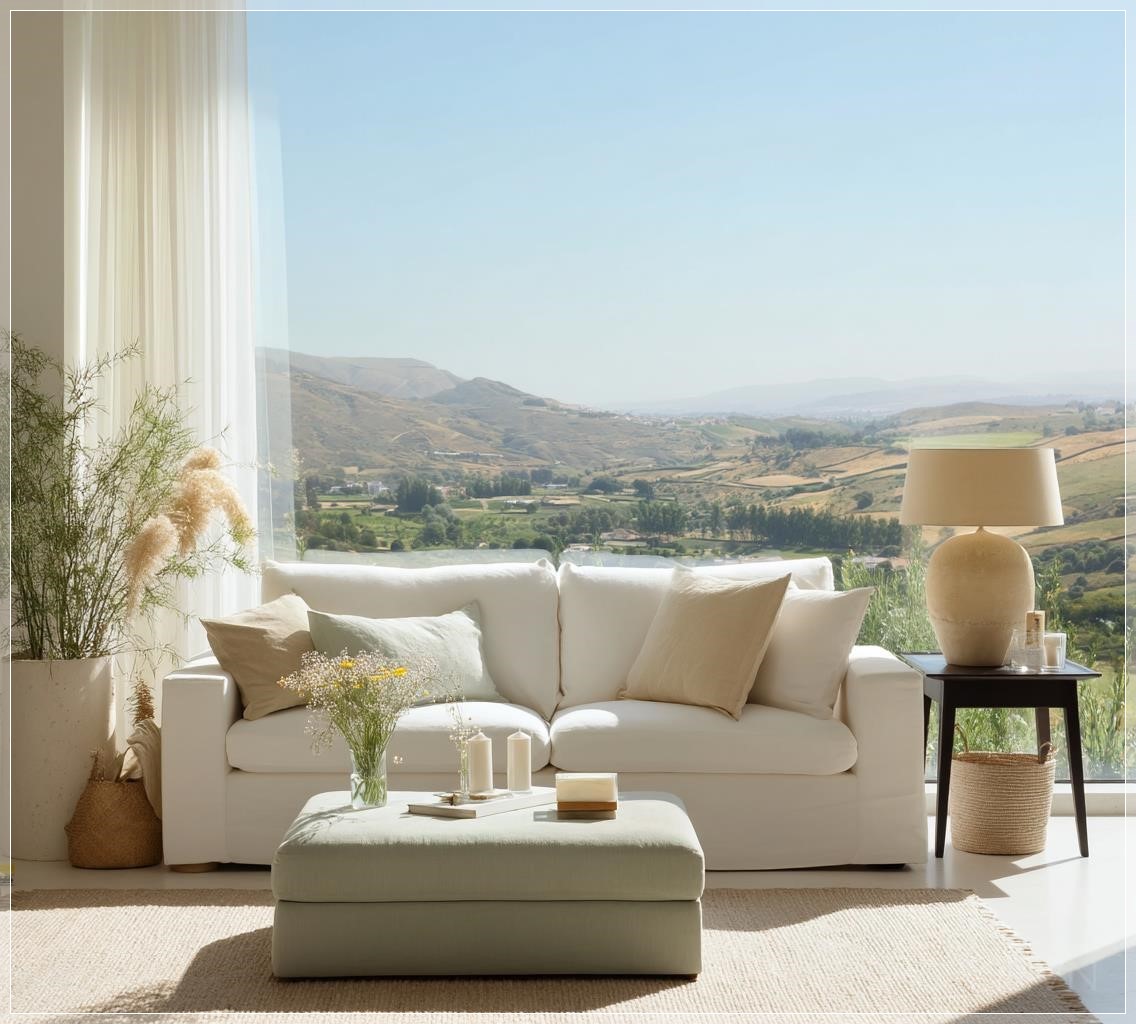 Cửa sổ lớn như một khung tranh sống động, mở ra tầm nhìn bao quát cảnh quan nông thôn Bồ Đào Nha với những ngọn đồi thoai thoải. Những đường cong mềm mại của địa hình tự nhiên bên ngoài như được phản chiếu trong các đường nét mềm mại của nội thất bên trong, tạo nên sự liên kết hài hòa giữa không gian sống và thiên nhiên.