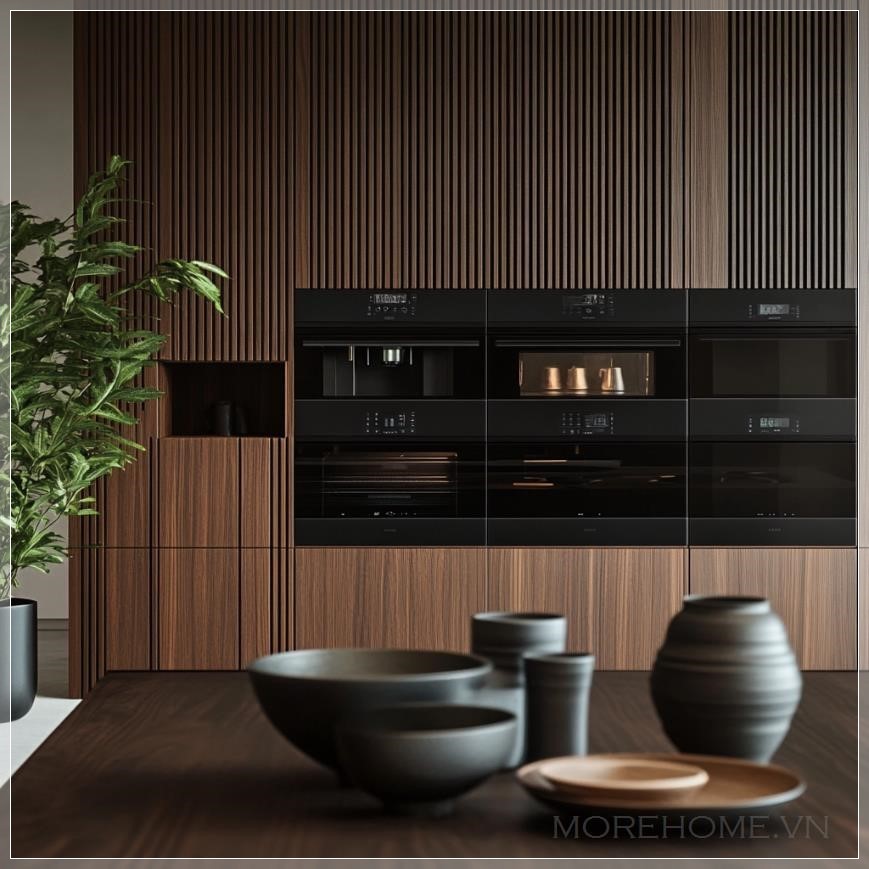 Trong không gian bếp hiện đại, sự kết hợp giữa công nghệ tiên tiến và thiết kế tinh tế đã tạo ra một môi trường không chỉ phục vụ nhu cầu nấu nướng mà còn mang lại cảm giác thư giãn và sang trọng. Một trong những xu hướng nổi bật hiện nay là việc tích hợp các thiết bị cao cấp vào những thiết kế tối giản, đặc biệt là trong bếp. Hãy cùng khám phá một không gian bếp sang trọng với những chiếc lò nướng kính đen, được thiết kế liền mạch vào một bức tường gỗ tinh tế, mang lại một cảm giác hiện đại và đẳng cấp.