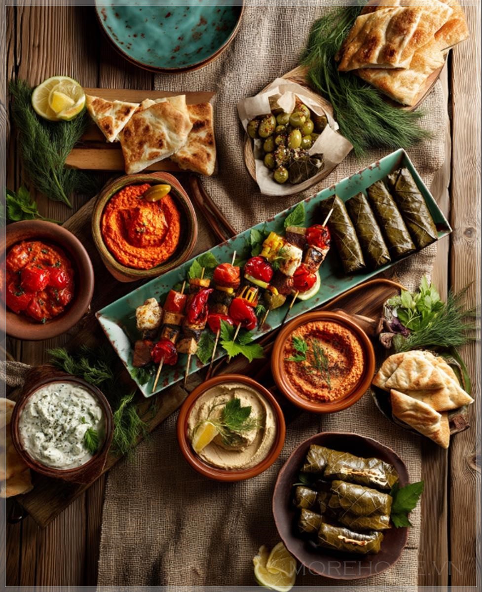 Bàn ăn với các món khai vị Địa Trung Hải luôn mang lại một cảm giác dễ chịu và hài hòa, từ sự kết hợp của màu sắc tự nhiên cho đến cách trình bày mang tính nghệ thuật. Trong không gian ấm cúng, được trang trí bằng vải lanh tự nhiên, mỗi món ăn không chỉ là một bữa ăn mà còn là một tác phẩm nghệ thuật, thể hiện sự sáng tạo và cái đẹp trong từng chi tiết. Những món khai vị nóng được bày trí khéo léo trên bàn gỗ, mang đến một không gian thư giãn, mời gọi tất cả những ai yêu thích sự tinh tế trong ẩm thực.